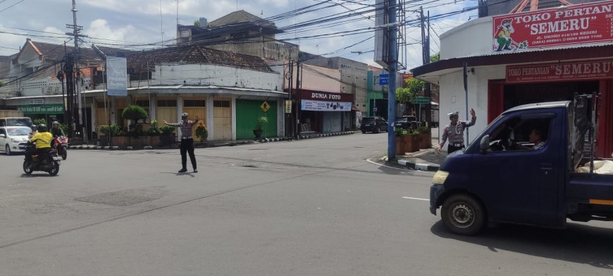 Petugas Lalu Lintas Atur Arus di Simpang Sumur Bor Kediri, Antisipasi Padat Kendaraan Saat Long Weekend